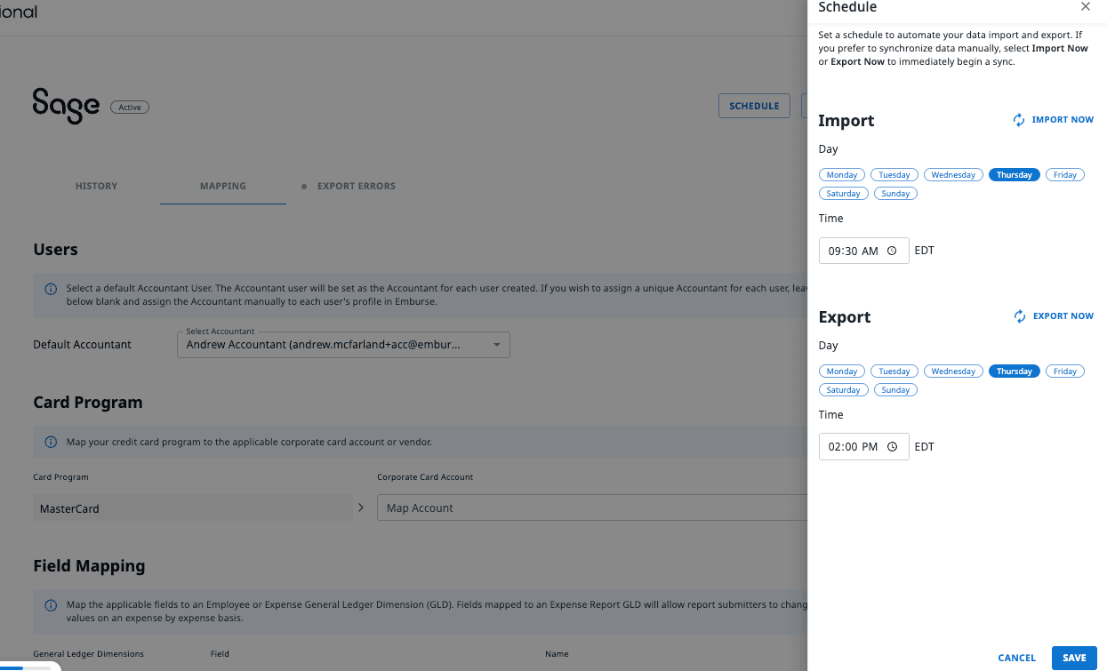 - Custom Field Mapping & Configuration: Easily map GL dimensions, corporate card data, and Sage-specific fields like classes or locations to fit your structure.