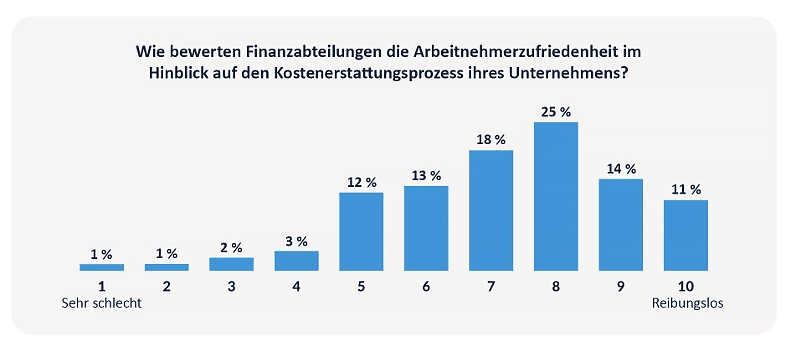 Und das Sahnehäubchen? Viele Buchhalter ahnen nicht einmal, dass ihre Kostenmanagement-Verfahren Arbeitnehmer in prekäre finanzielle Situationen gebracht haben, was man daran erkennen kann, dass 50 % aller Buchhalter in Unternehmen die Zufriedenheit der Arbeitnehmer mit dem Spesenabrechnungsprozess mit 8 von 10 oder höher bewerteten.