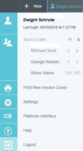Users who have given you delegate authority will be listed under your name (upper right). Counts of unapplied transactions and unsubmitted reports will be presented beside the name so you can tell at a glace if there is pending activity. Simply select the name to delegate to the user's account.