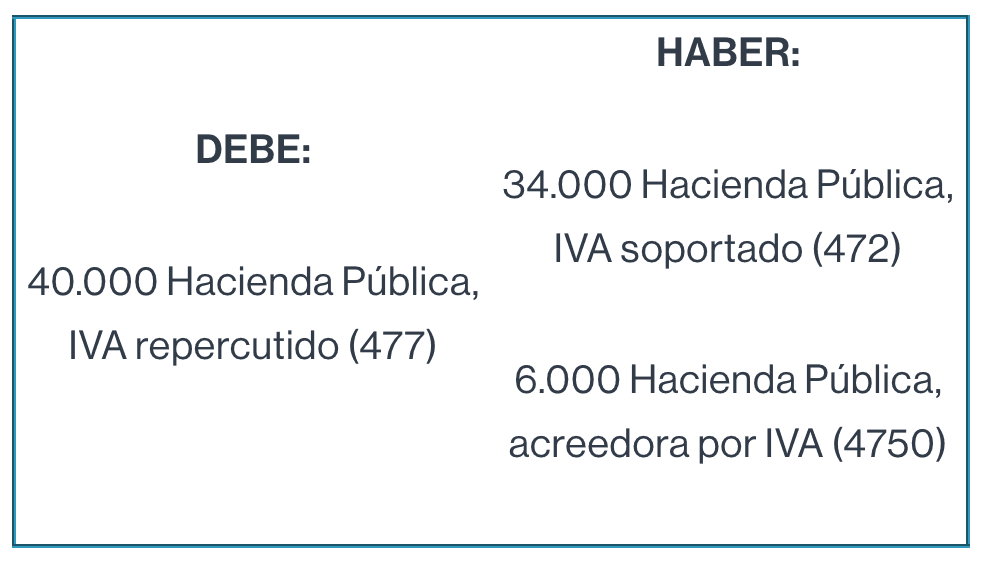 34.000 euros de IVA soportado contra 40.000 euros de IVA repercutido: