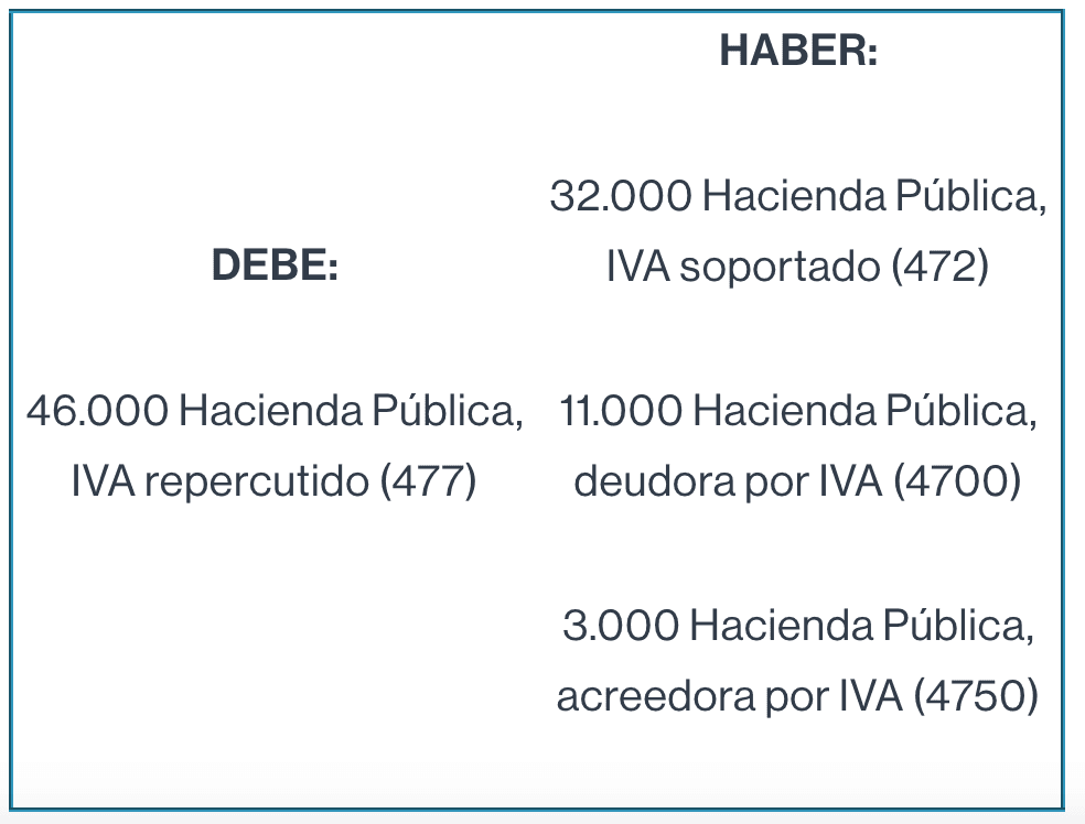 Caso 1: apunte contable declaración IVA a pagar