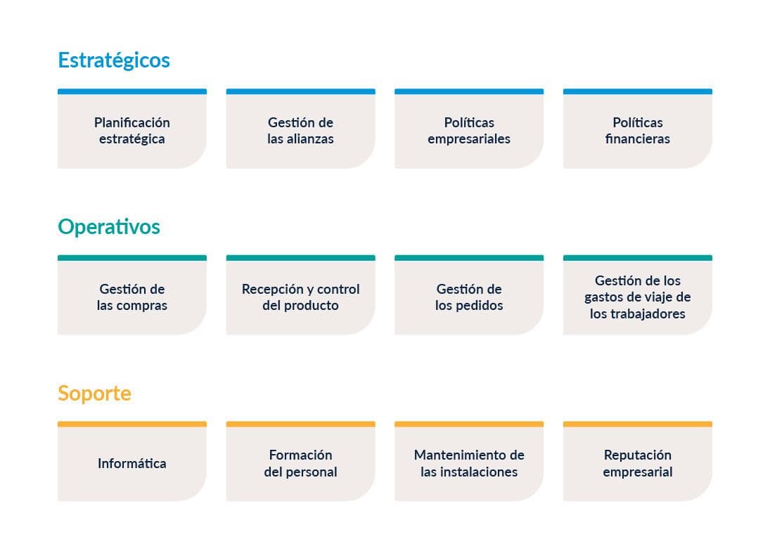 De hecho, se suele diferenciar tres grandes grupos de procesos de la organización: estratégicos, operativos y de soporte.