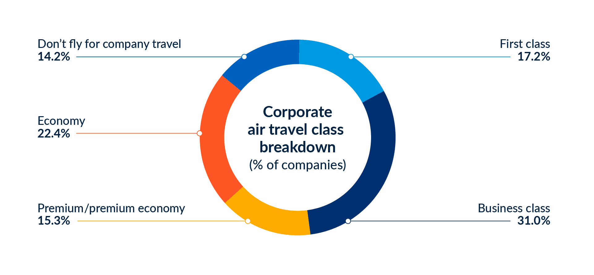 Desglose de la clase de viajes aéreos corporativos (% de empresas)