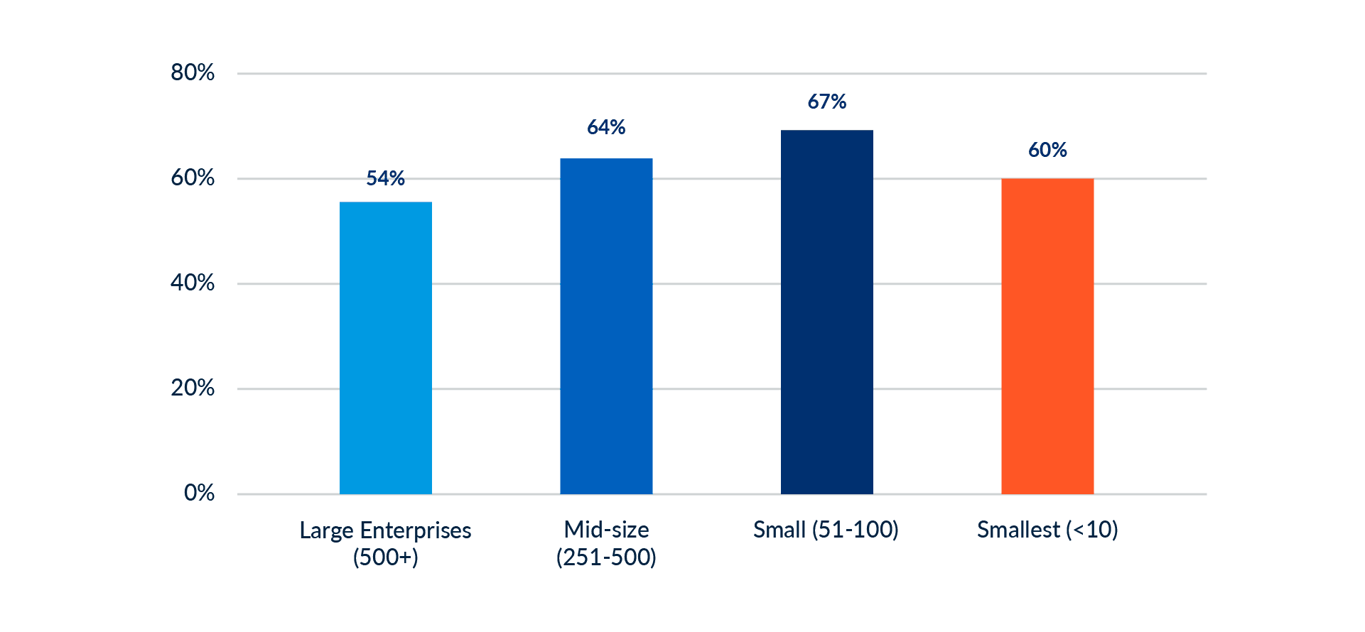 Las empresas con bajo rendimiento muestran la tasa más baja de cobertura completa (26%), con la mayoría de sus empleados (53%) gestionando algún nivel de gastos incidentales. Las empresas estables parecen incurrir en el impacto más equilibrado a las finanzas de los empleados, con el menor porcentaje de empleados reportando una gran tensión financiera (15%).
