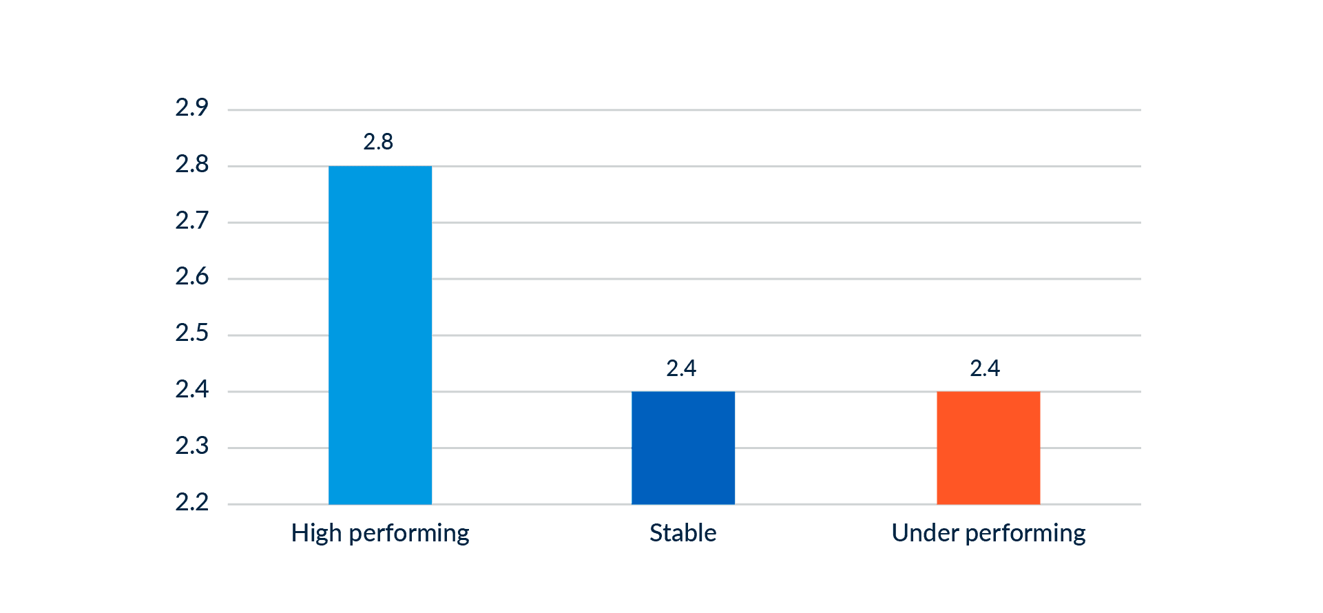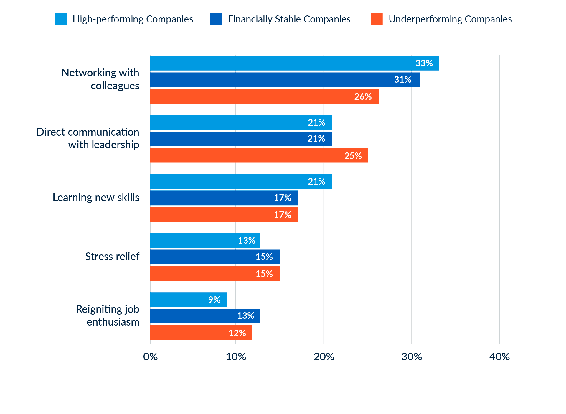 Los empleados de empresas de alto rendimiento valoran el establecimiento de redes y el desarrollo de habilidades, mientras que aquellos en empresas con bajo rendimiento muestran una mayor necesidad de interacción con el liderazgo.