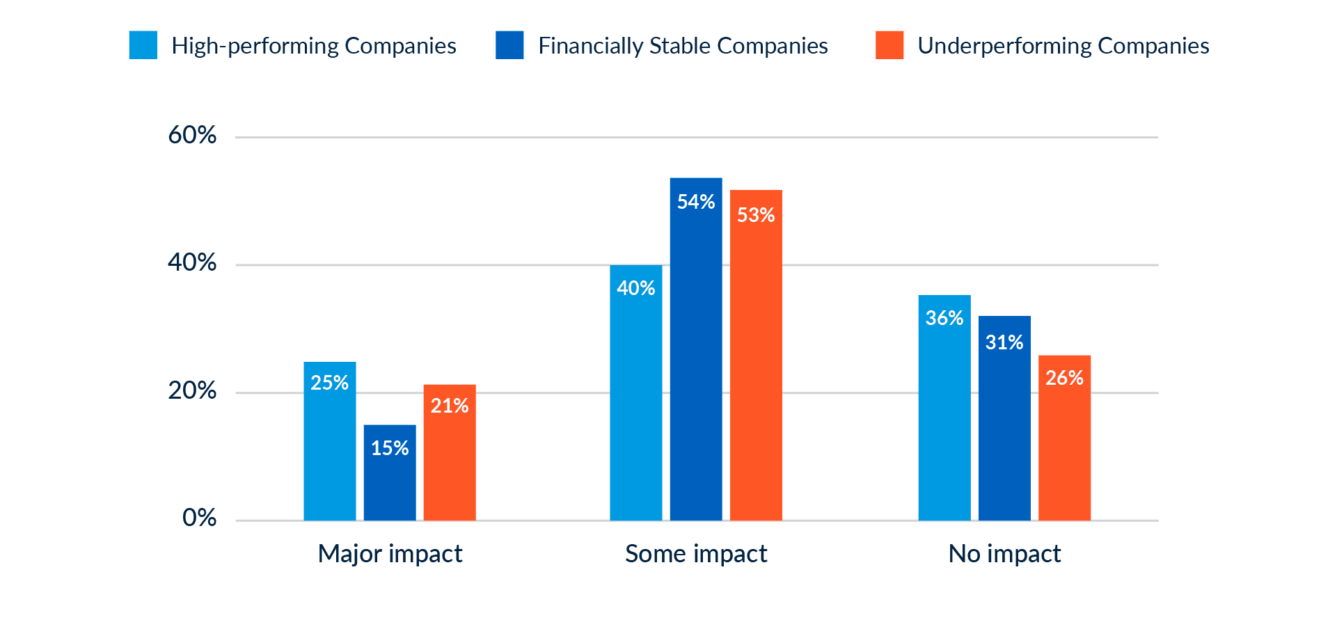 La diferencia en la actitud de los empleados hacia las actividades fuera de la oficina es notable entre las empresas de alto rendimiento y las de bajo rendimiento: