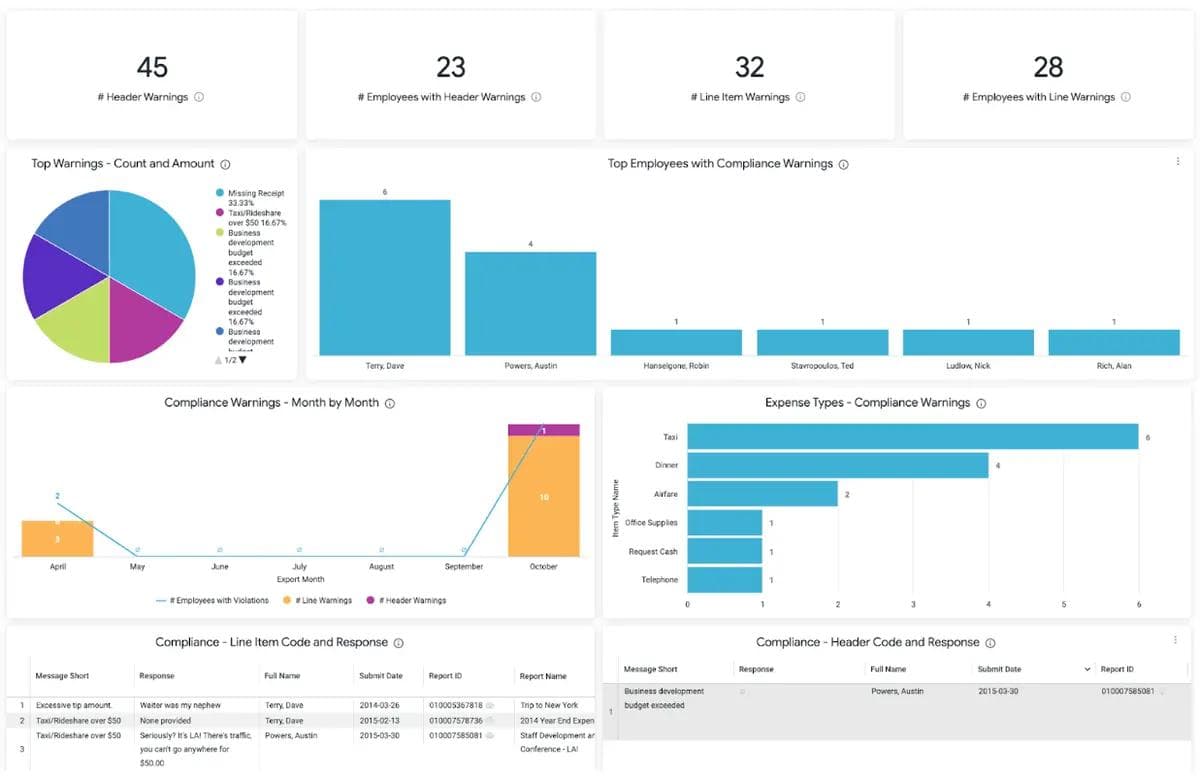 Make vast data sets easy to digest and tell a story with utilizing customizable analytics dashboards that distill complex patterns and trends. Identify the top opportunities to change spend policies and drive compliance, detect risky spending behaviors, negotiate with vendors, and increase operational efficiency.