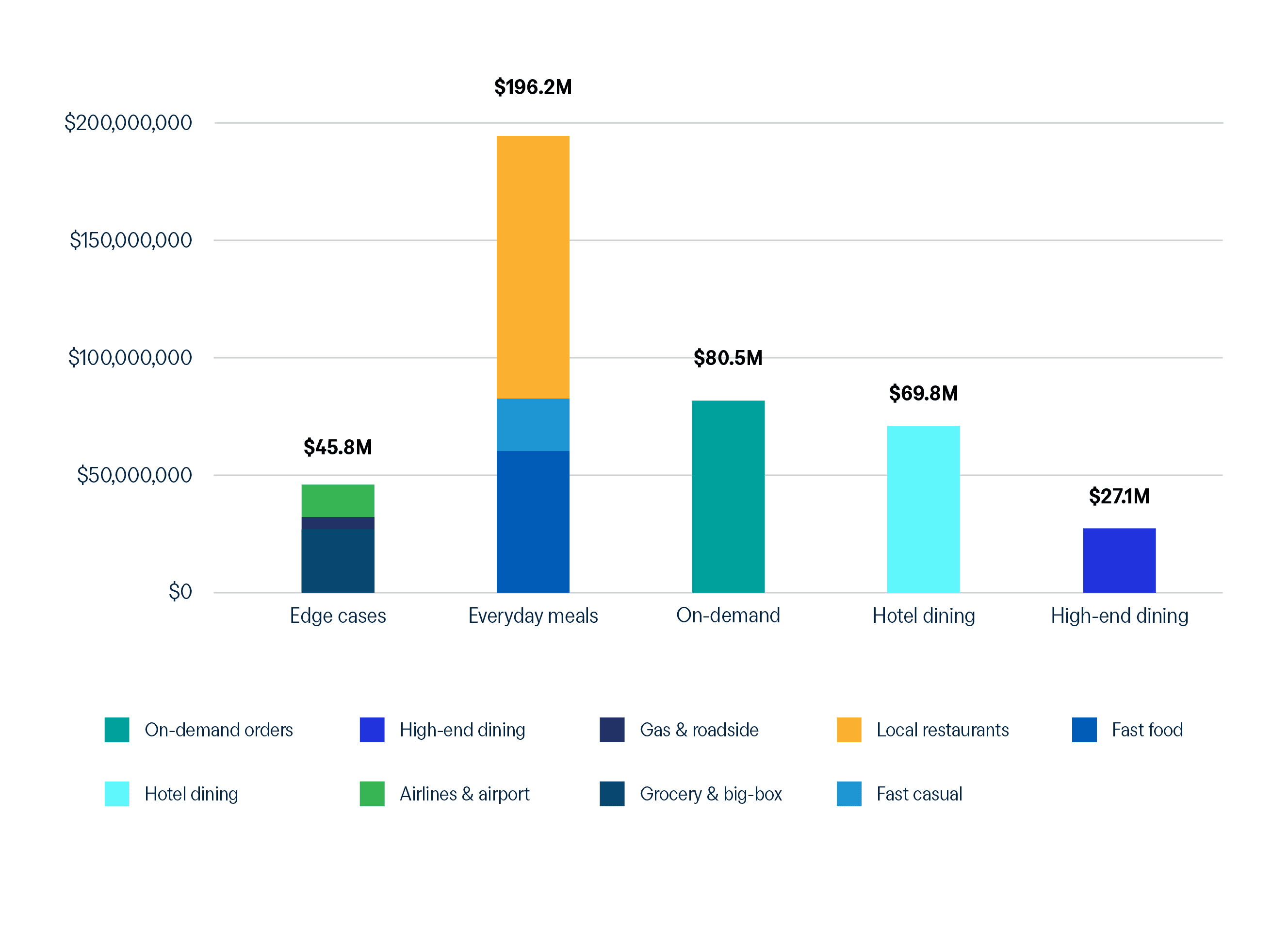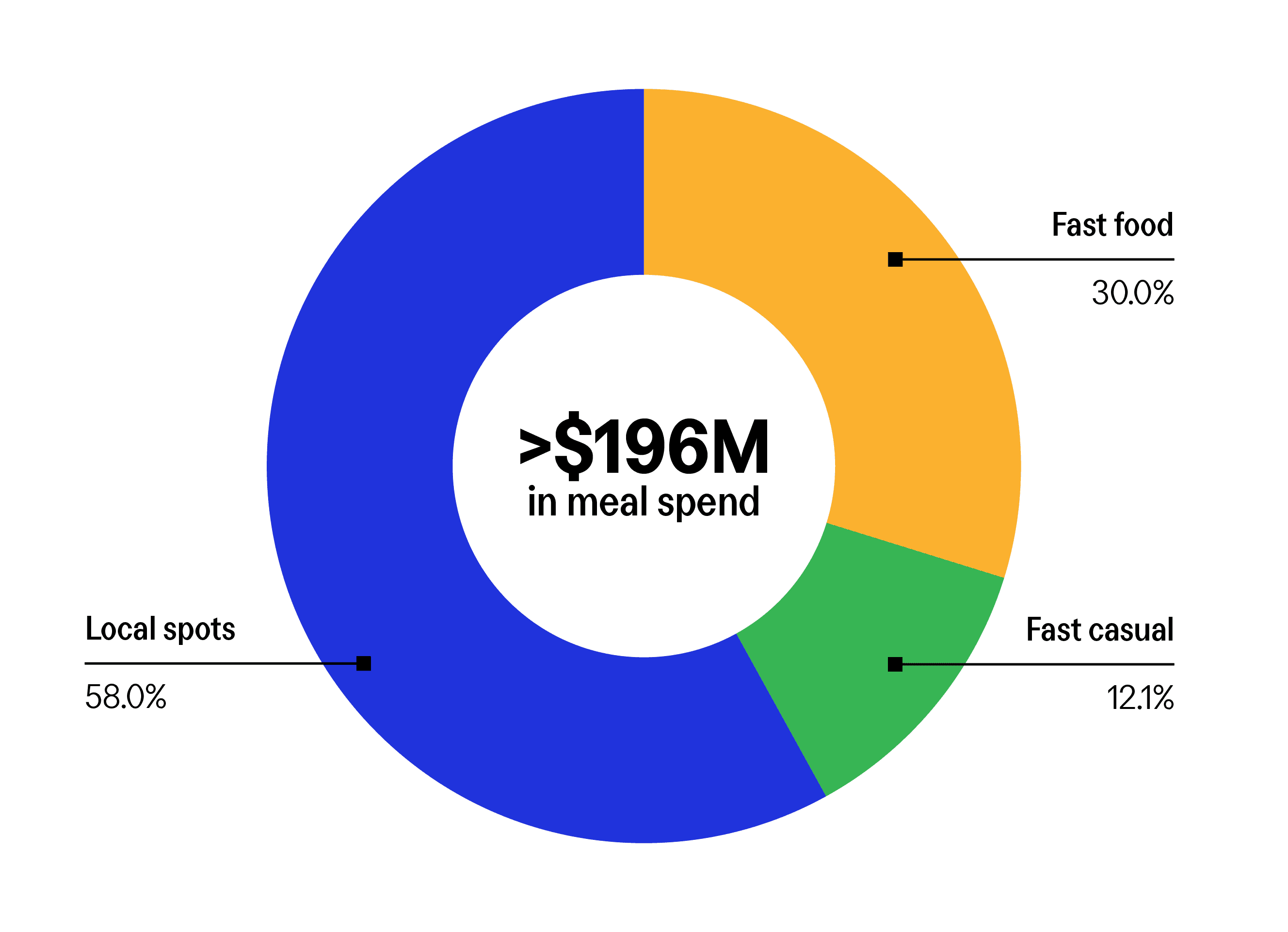 - $80.5M through on-demand platforms, with Uber Eats as the largest identifiable vendor