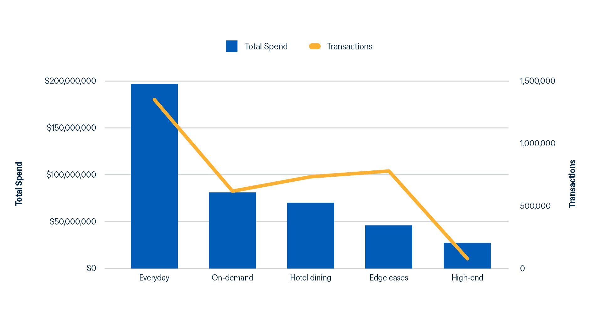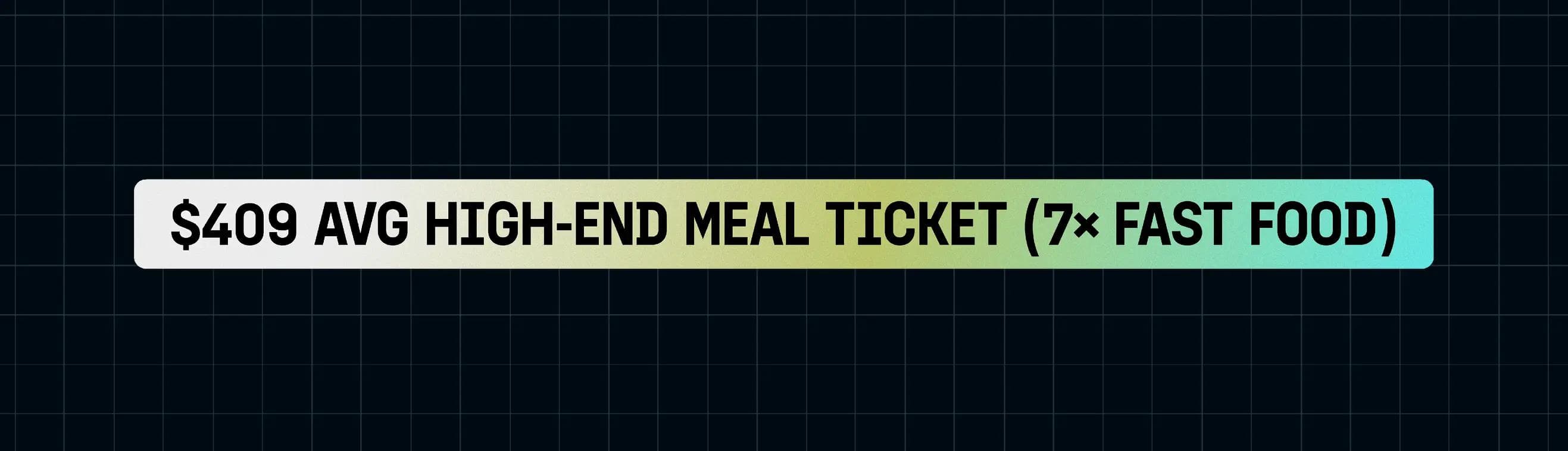That volume represents less than 0.5% of all meal receipts. Yet with an average ticket of $409 per meal, high-end dining stands apart as one of the most consequential categories in the dataset.