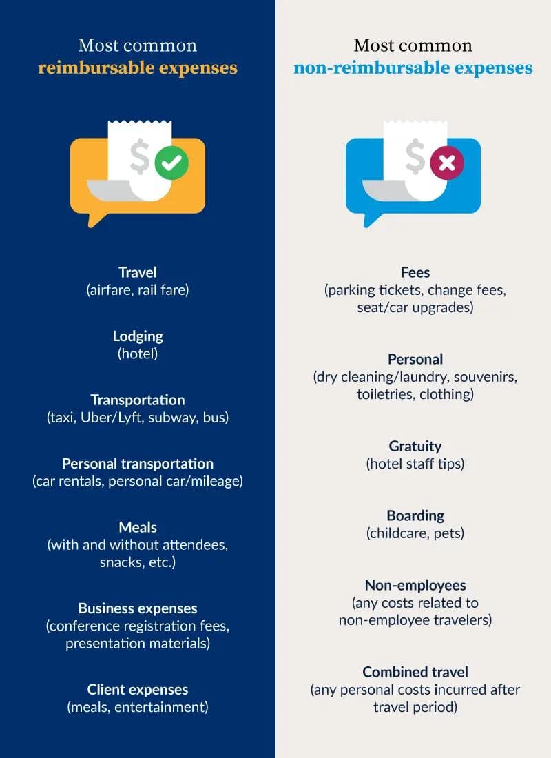 How do you decide which expense claims to cover? Start by setting straightforward standards that align with your travel budget. Maybe you'll only reimburse for economy flights, cap hotel stays at 3-star properties, or follow GSA per diem rates for meals and lodging. Whatever limits you choose, be transparent about the reasoning. When employees understand the “why” behind the rules, they're far more likely to follow them.