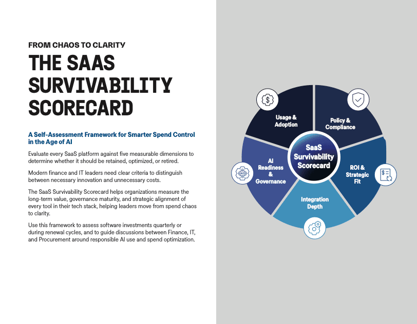 In a landscape where AI hype can easily overshadow business performance, the SaaS Survivability Scorecard enables Finance, IT, and Procurement to work from a shared evaluation model rooted in clear, measurable outcomes.