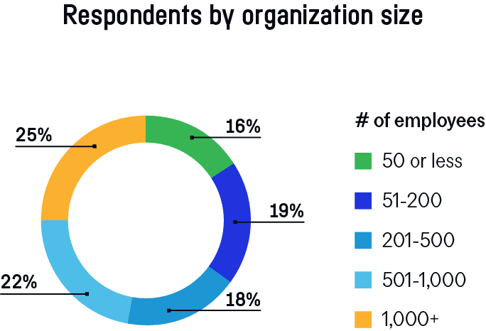 Respondents included 1,000 U.S. and 500 U.K. professionals across Finance, HR, Sales/Revenue, and IT, with a minimum of 150 respondents per function and company size segment, which ranges from fewer than 50 employees to more than 1,000.