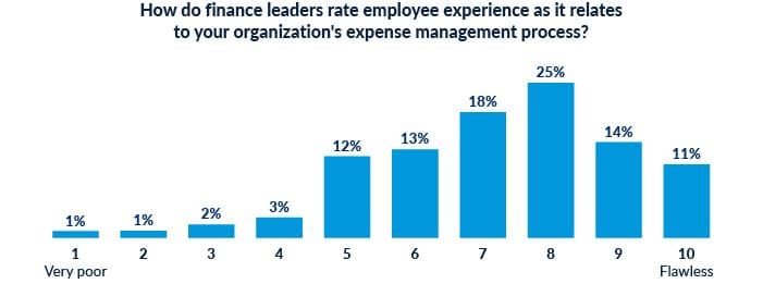 The icing on the cake? Many finance professionals are unaware of how their expense management processes have put employees in uncomfortable financial circumstances, as suggested by the 50% of finance professionals who ranked their employees’ expense experience at an 8 out of 10 or higher.