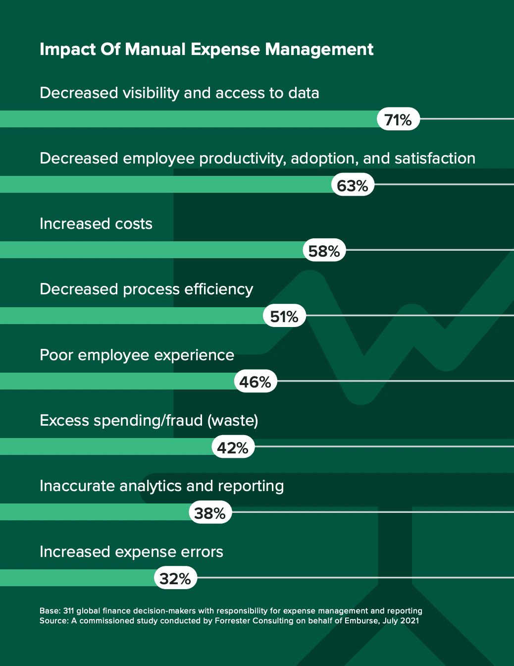Forrester reported that finance teams relying on outdated expense management systems faced many operational inefficiencies that significantly impacted their bottom lines. For instance, more than half (51%) of respondents reported being held back by decreased process efficiencies that led to bottlenecks in their organisations.